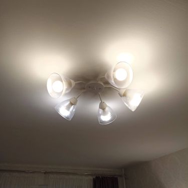 Соберём люстру, повесим на потолок, подключим к электричеству, спрячем провода. Работу выполним за 1–2 часа. Будем отключать свет. Высота стен не более 3 м. Стремянку при необходимости предоставляет клиент.