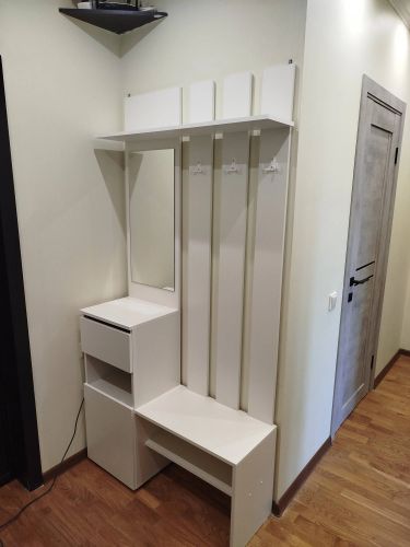 Соберём прихожую по инструкции изготовителя и установим в нужном месте. Работу выполним за 1–2 часа. Будет шумно.