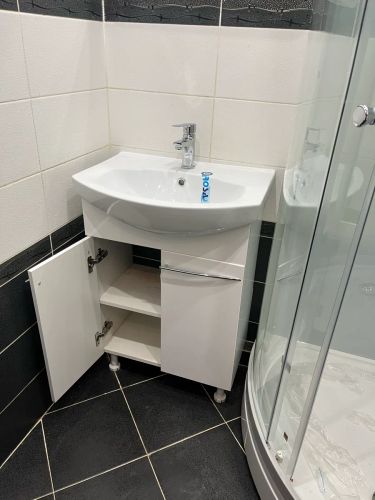 Соберём и установим кабину, обработаем герметиком, подключим смеситель и душ. Работу выполним за 2–4 часа. Будем перекрывать воду.