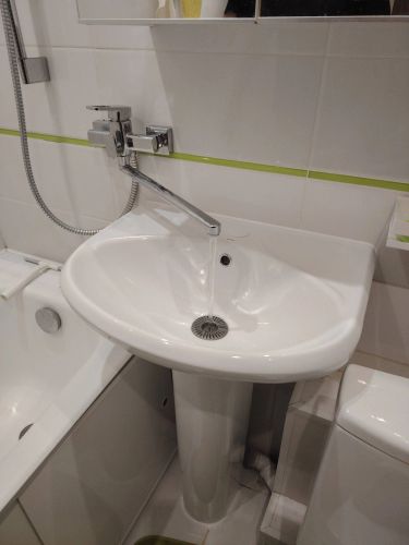 Установим, загерметизируем и подключим умывальник. Работа займёт 1–2 часа. Будем перекрывать воду.